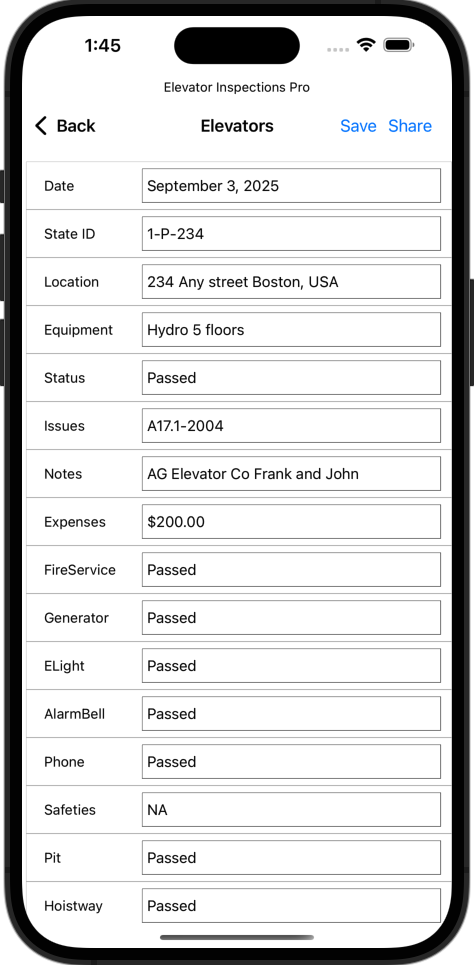When finished, tap Save—or choose Share to instantly send the PDF report by email or text.