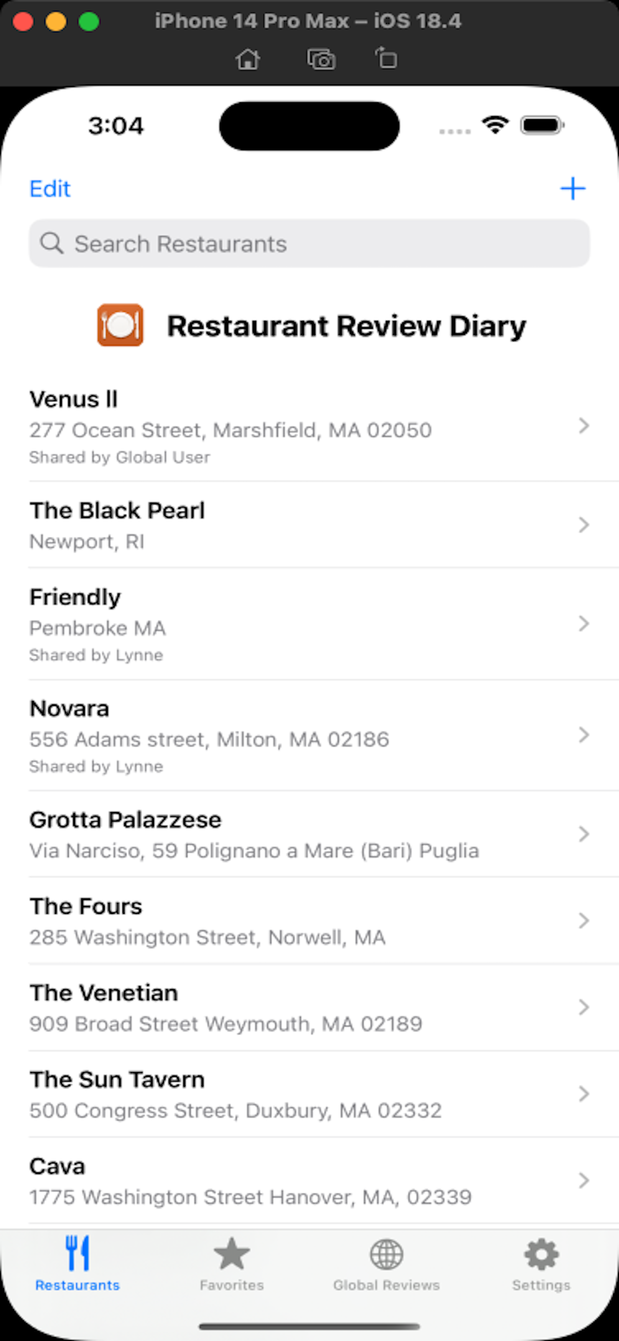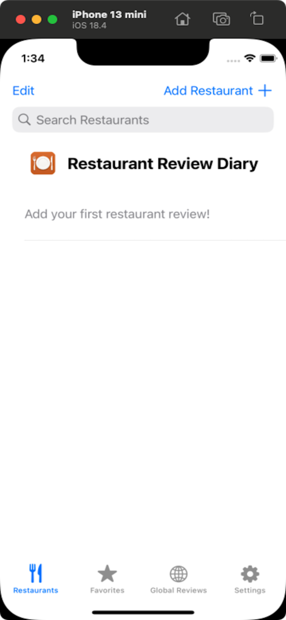 No restaurants yet? Tap Add Restaurant to add your first review and start building your personal list.