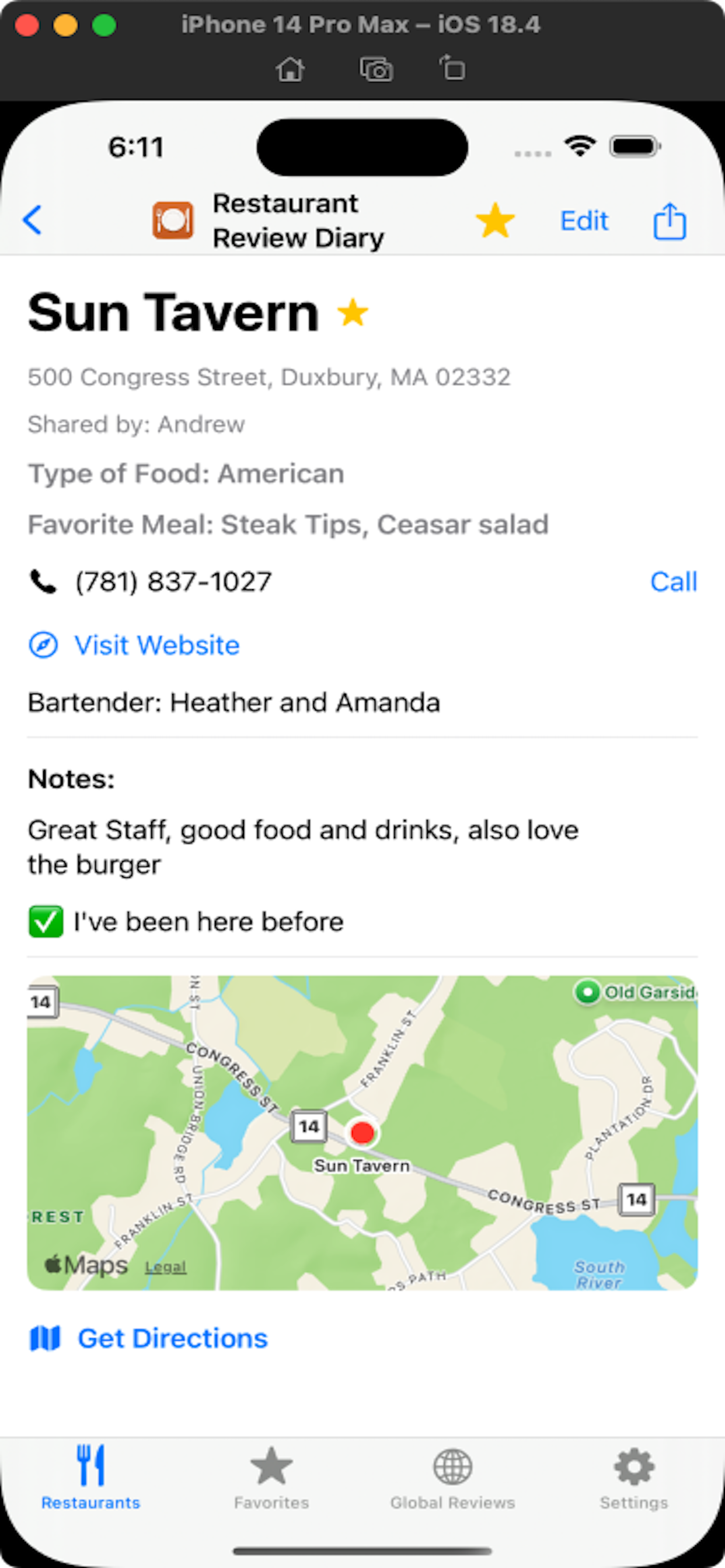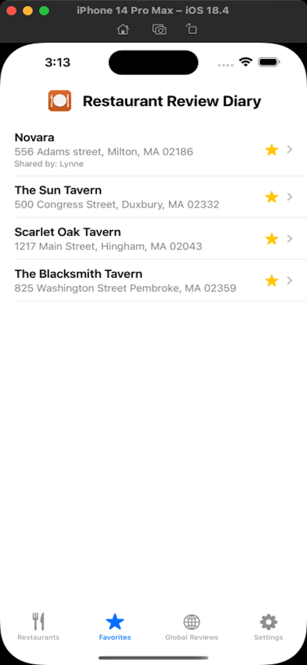 No restaurants yet? Tap Add Restaurant to add your first review and start building your personal list.