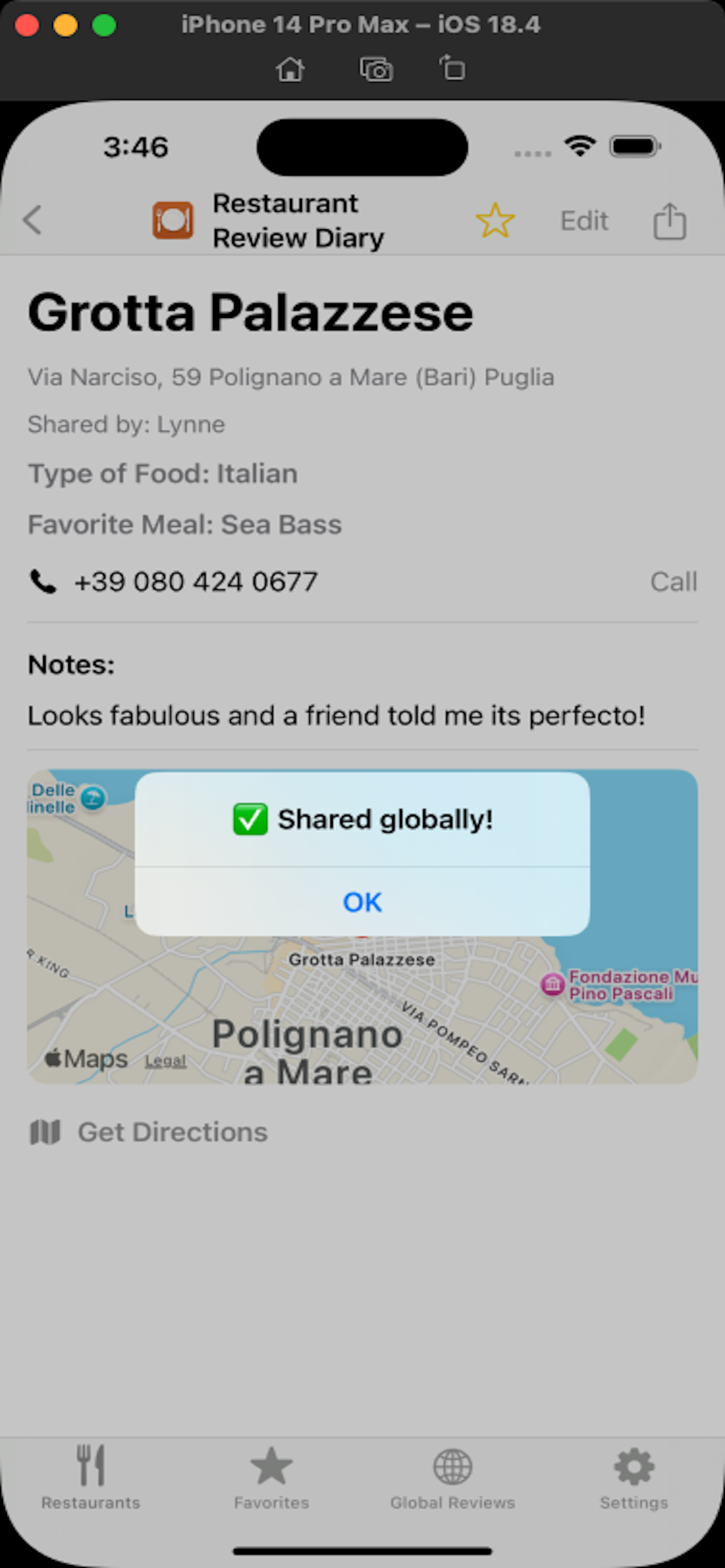 Restaurant Review Diary lets you document every restaurant visit, meal, and experience — from a local favorite to global discoveries.