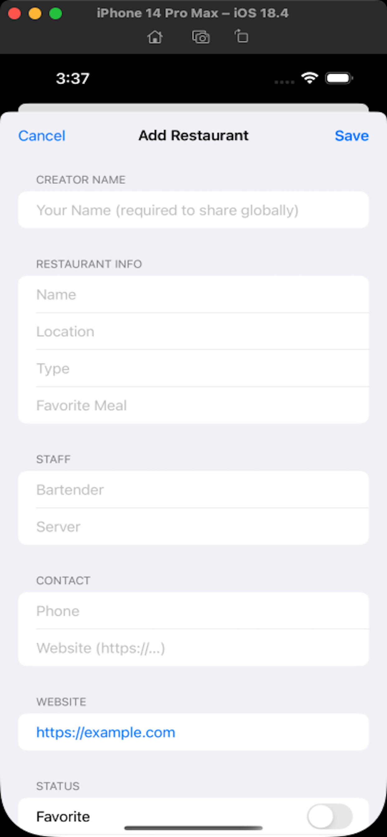 Restaurant Review Diary lets you document every restaurant visit, meal, and experience — from a local favorite to global discoveries.