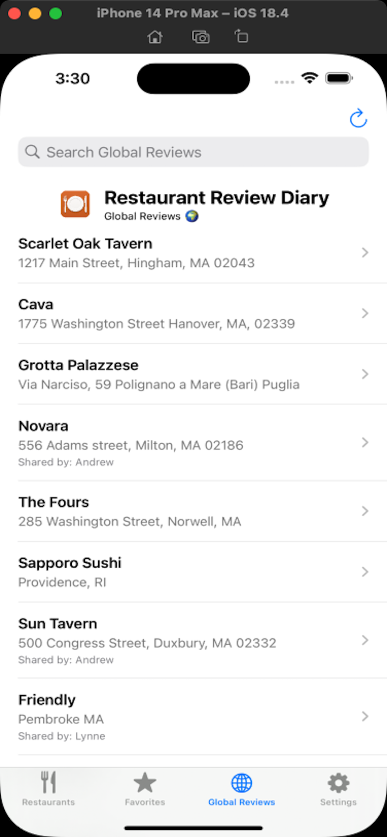 No restaurants yet? Tap Add Restaurant to add your first review and start building your personal list.